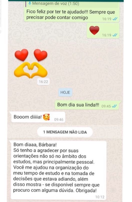 Canal direto comigo para tirar dúvidas e manter o foco com suporte real durante toda a sua jornada de criação.